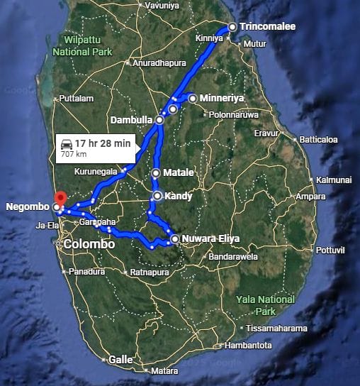 Travel time to Sigiriya from Negombo (Approx 03 Hours)
